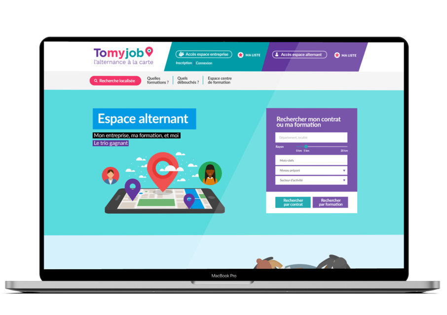 Création de l’identité digitale et développement de la plateforme web Tomyjob, initiative pour faciliter le recrutement d’alternants.