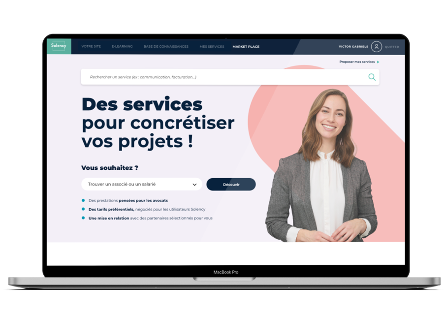 Création de la marketplace de Solency, des prestations et tarifs préférentiels proposés pour les professionnels du droit et du chiffre : UX, UI et développement.