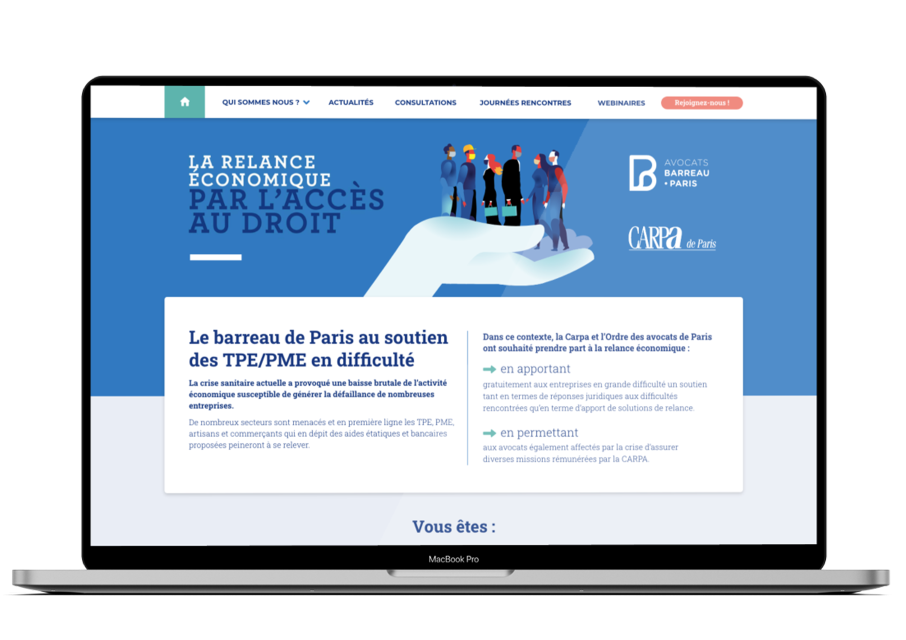 Conception et développement du site de présentation de l’opération de soutien aux TPE / PME par le barreau de Paris.