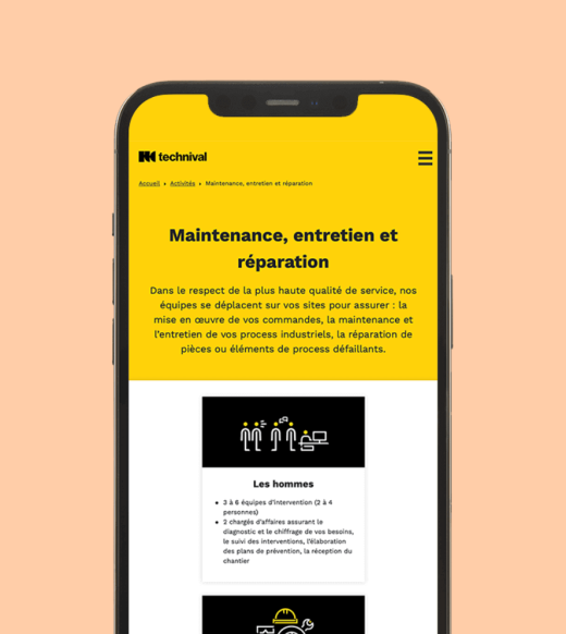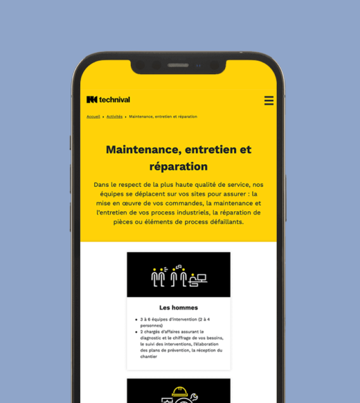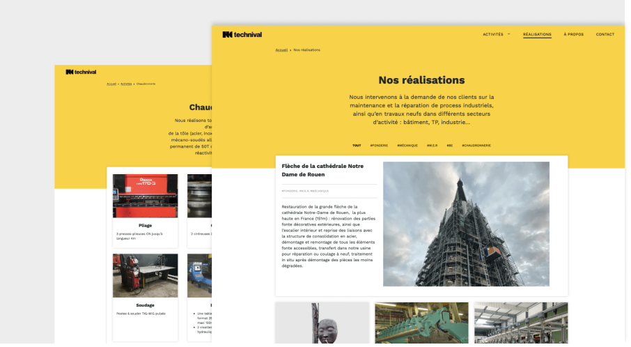 Nous avons travaillé à partir de notre CMS, Cargo, afin d’offrir au responsable de la communication de Technival Industrie une administration à sa main et faciliter la mise à jour des contenus. En terme d’image, le travail du logo s’est basé sur des formes géométriques mêlant angles durs et arrondis, symbolisant ainsi la solidité des matériaux et la souplesse d'exécution des process.